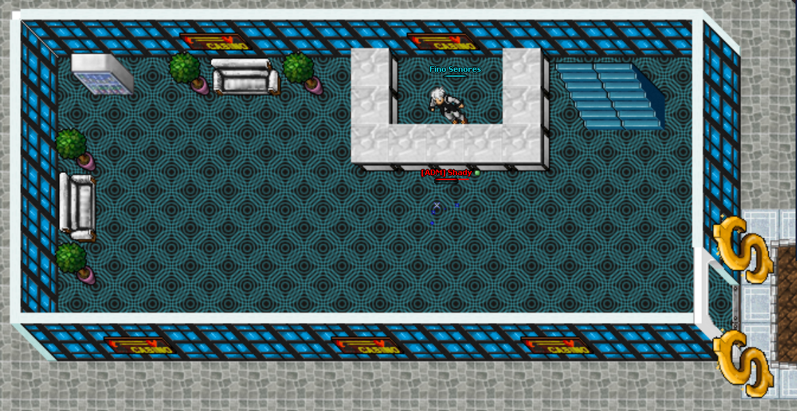 Lá haverá um NPC chamado Fino Senores, e esse NPC poderá Vender, Comprar ou Trocar Cassino Coins por Pokémons Shiny. PS: Os Cassino Coins não são itens, eles ficam armazenados na memória do seu personagem. Como Conseguir Cassino Coins? Compre Cassino Coins com o NPC, para aumentar essa quantia, jogue nas máquinas no mesmo local (Primeiro Andar), Você terá chance de ganhar mais Cassino Coins, ou Perder os seus, porém, a chance de ganhar é bem alta, e a quantia que você recebe e coins também.