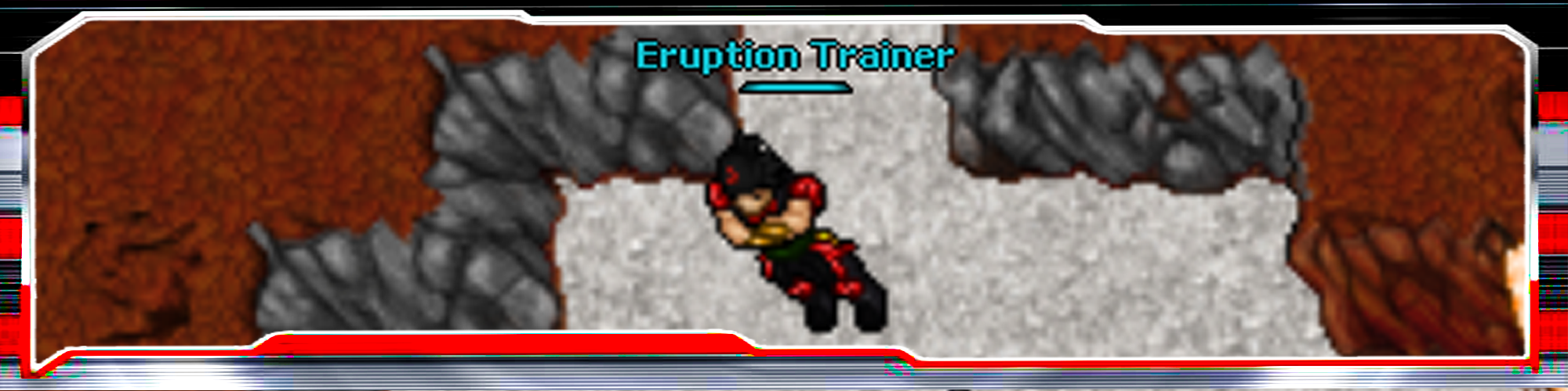 Name: Eruption Trainer Localização: Abaixo de Cinnabar (Subsolo (buraco quase invisivel) Função: Clan Rank 4. Clan: Volcanic. ![]() |